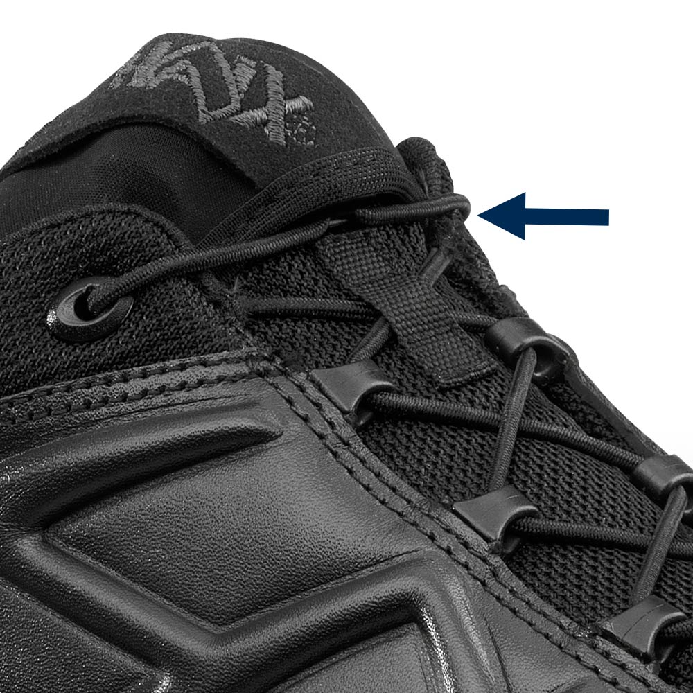 The Black Eagle Tactical 2.1 GTX low has a quick-release fastener with which the lacing can be quickly fixed. The lacing is easily tucked away in the flap, so that the hold is guaranteed during the working day.