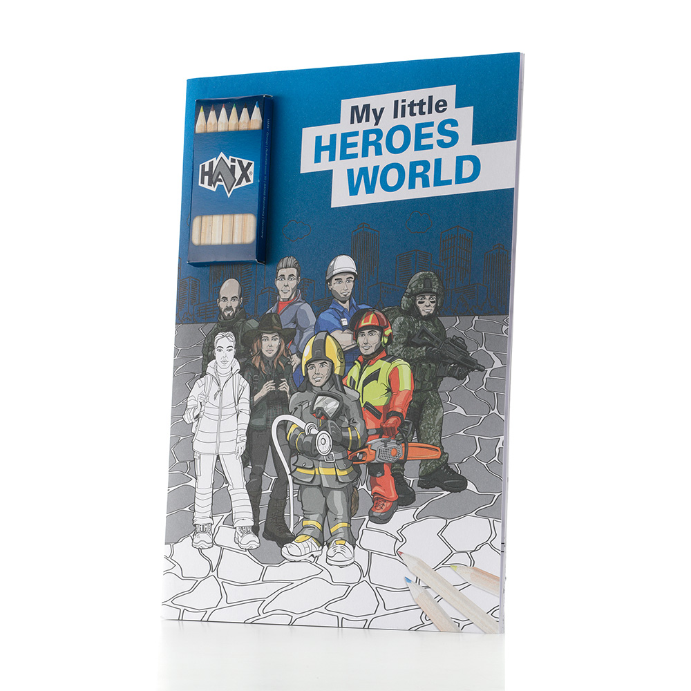 Make your world more colourful - with the colouring book from HAIX®. The lovingly designed book offers 22 pages full of creativity and puzzle fun. Each page features one of our heroes for you to colour in. You can then perfect your artwork with great stickers. There is also a riddle on each page - can you find the solution? For easy handling, the pages can be separated from the Colouring Book in A4 format. There is also a box with the matching pens directly with the book. Let your creativity run free!