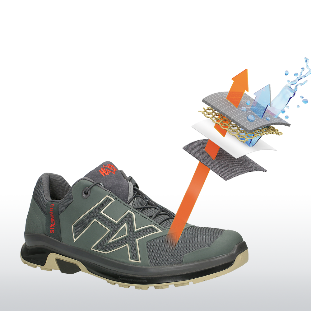 Unlike the CONNEXIS Go, the CONNEXIS Air does not have a GORE-TEX membrane. That is why CONNEXIS Air is not waterproof, but ultra-breathable and permeable to air.