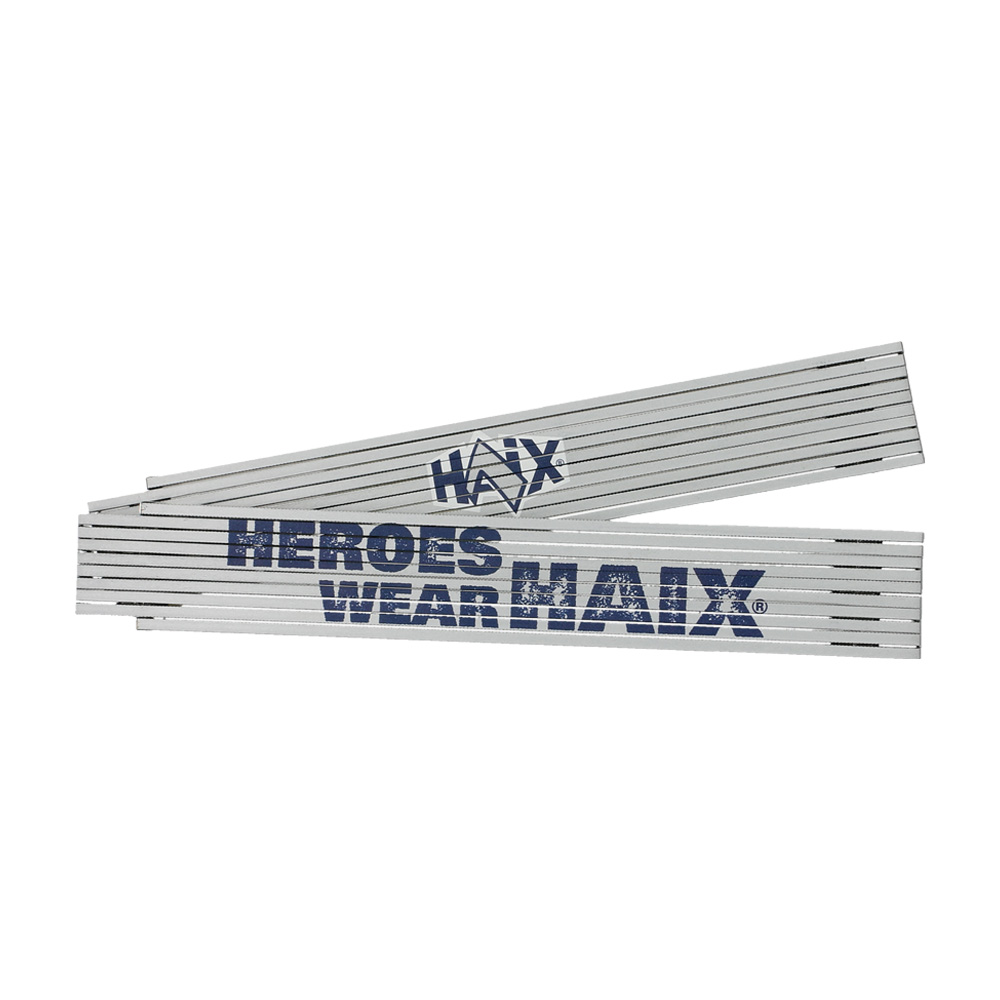 The sturdy HAIX Folding rule is the must-have for all HAIX WORKWEAR fans. No matter if on the construction site or at home - the practical measuring tool is always with you. Made of stable wood with 2-metre measurement.